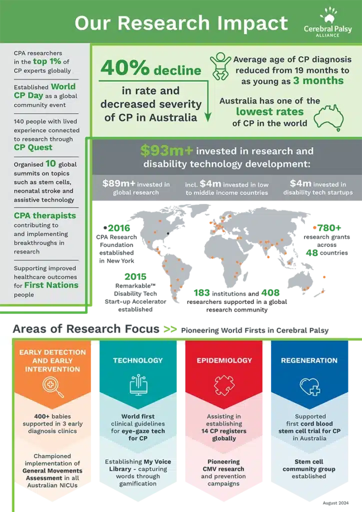 Philanthropy transforms lives by enabling access to early diagnosis and intervention, life changing technology, supports and opportunities not funded by NDIS, research into prevention, treatment, and cure for cerebral palsy, and advocacy to change the future.