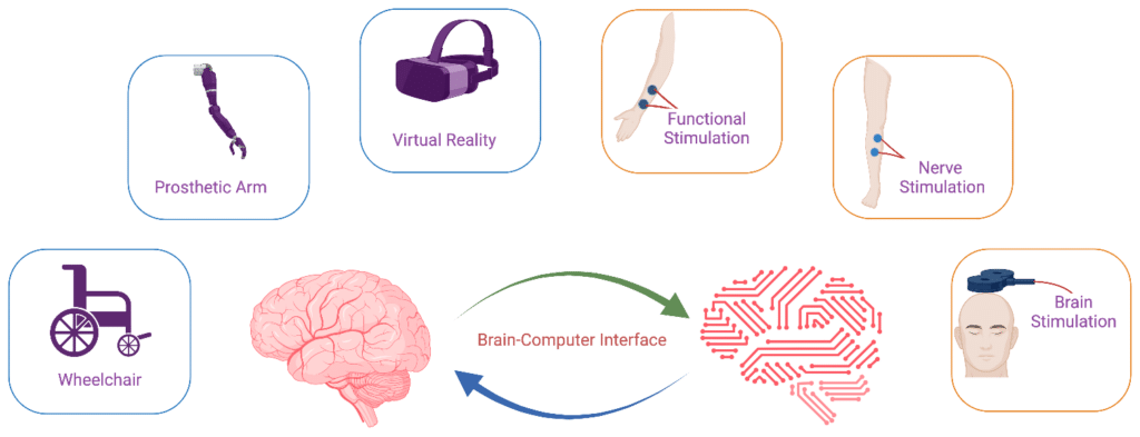 Braincomputer interface (BCI) – A technology that detects and interprets a person’s brain activity and translates it into commands to control a computer, device, or software without requiring physical movement.