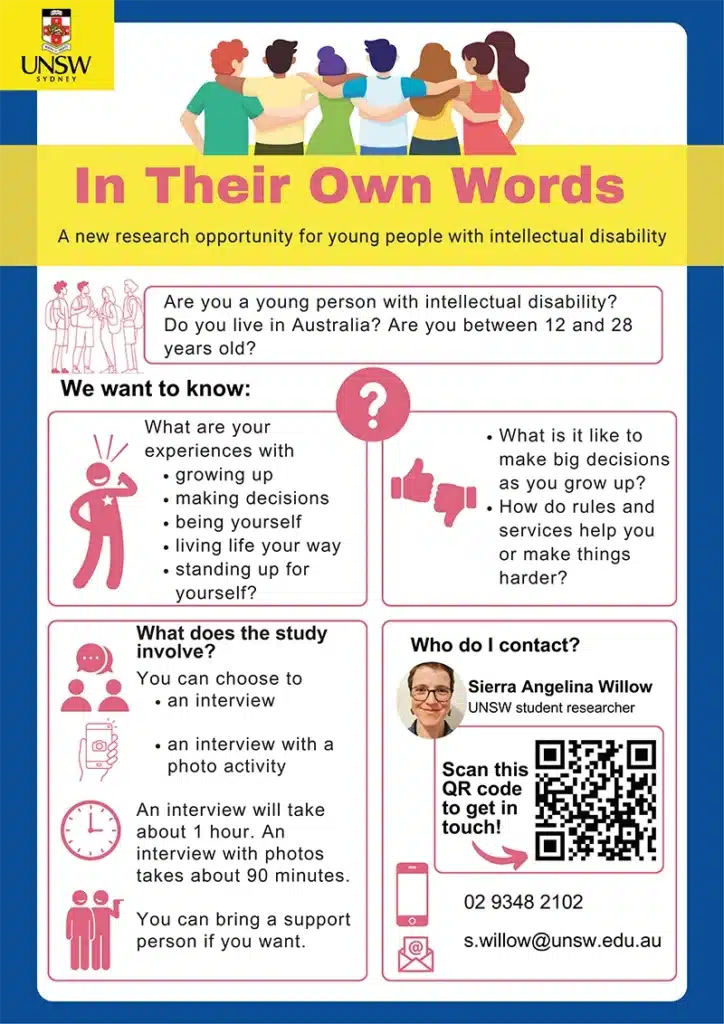 This research project is about young people with intellectual disability and their experiences of growing up, making choices and decisions, and becoming an adult.